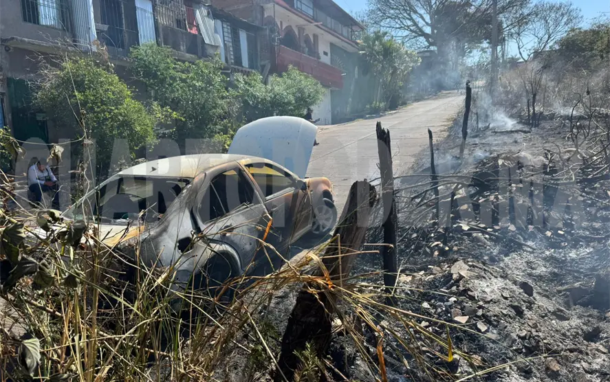 El incendio de un terreno baldío se salió de control y alcanzó un automóvil particular que estaba estacionado sobre la avenida General Vicente Guerrero, en la colonia José Castillo Tielemans, ubicada en la ciudad de Tuxtla Gutiérrez, el mediodía del viernes.
