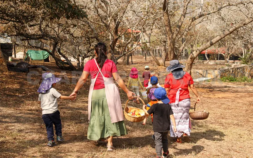 Desde el aula, las materias tradicionales como matemáticas y lenguaje se integran a actividades prácticas: cocinar para aprender medidas, construir para comprender proporciones o celebrar festivales estacionales para observar los ciclos de la naturaleza.
