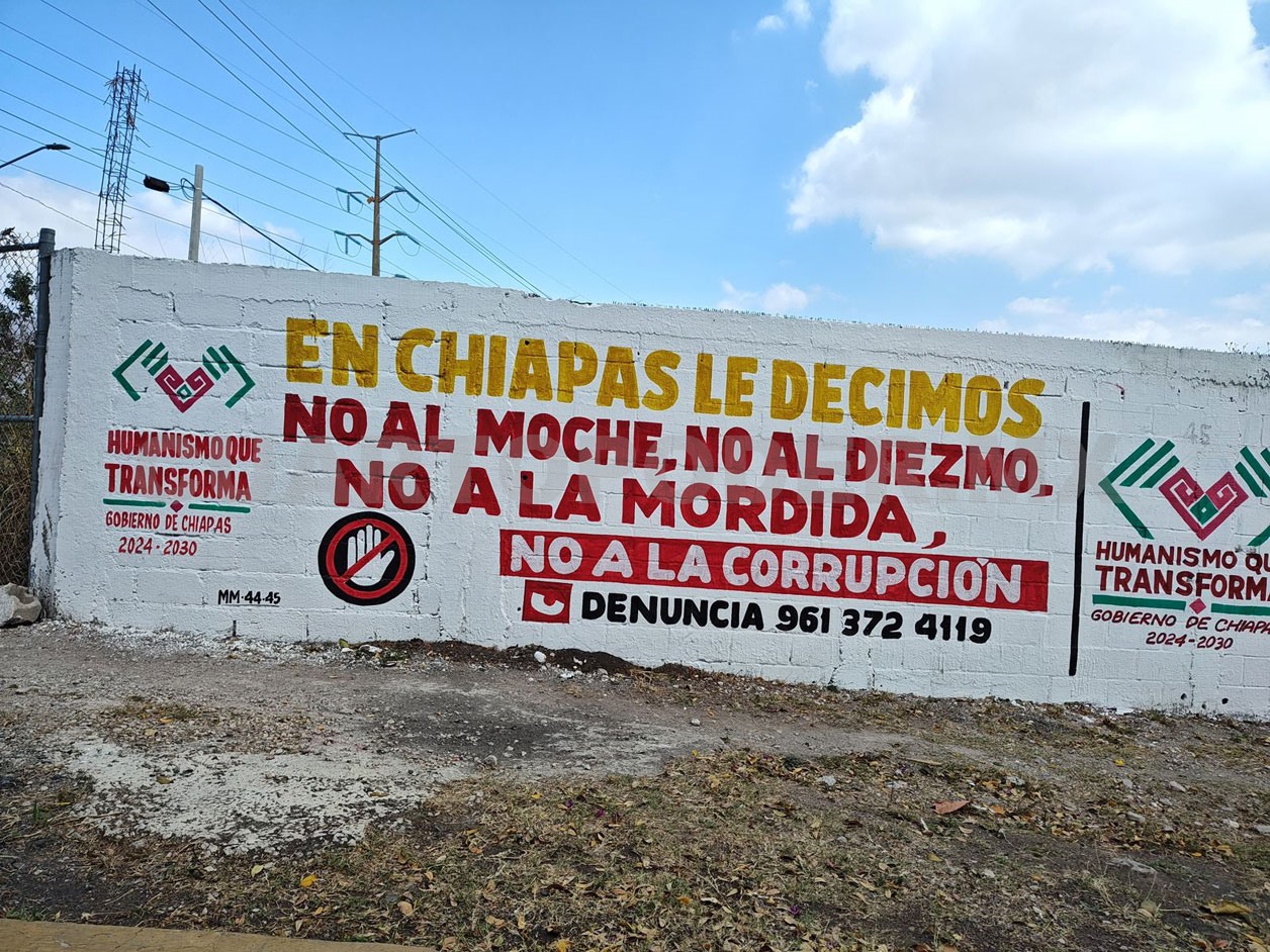 En diferentes espacios de Chiapas se han difundido mensajes para evitar actos de corrupción. Cortesía.