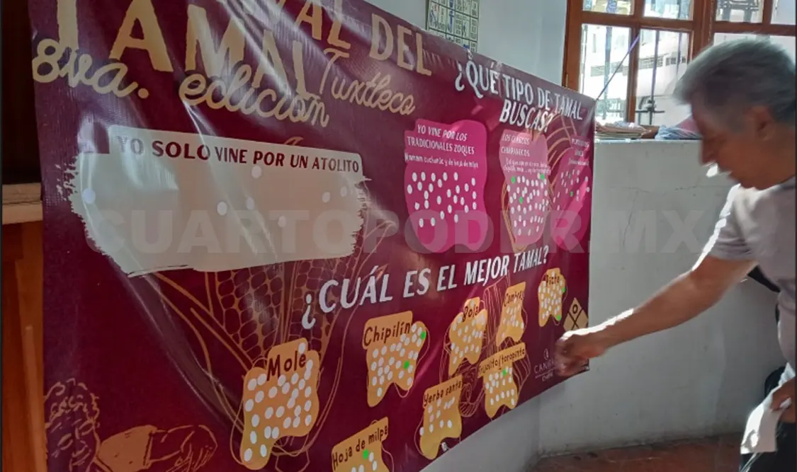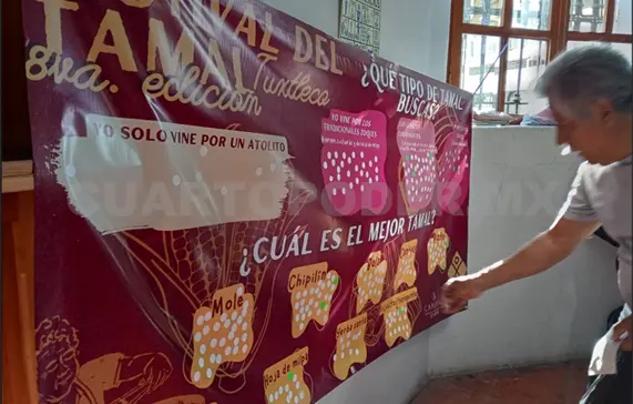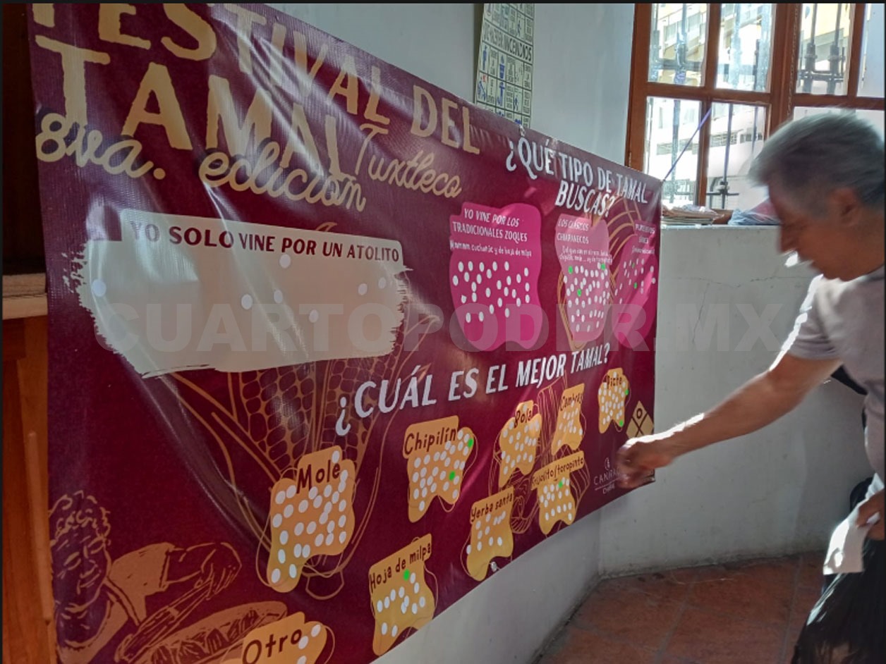 El Museo de la Ciudad llevó a cabo un mapeo en el que consultó a los asistentes al Festival del Tamal Tuxtleco sobre cuál es su favorito. A la entrada del recinto, una colaboradora interceptaba a los visitantes y les entregaban pegatinas para que las personas respondieran a las preguntas escritas en una lona.