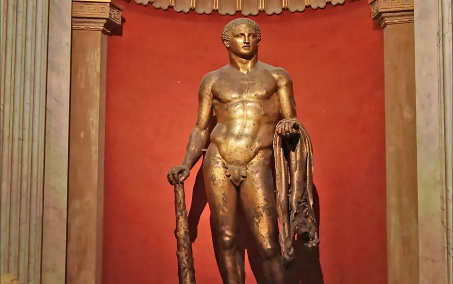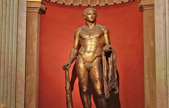 Gracias a eso se pudo conservar la gran escultura de Hércules, una copia romana de un original helenístico del siglo IV a. C., que representa al héroe joven apoyado en su garrote y con las manzanas de las Hespérides en la mano izquierda. En el antebrazo lleva la piel del león de Nemea, principal elemento que descubrió de qué personaje se trataba.