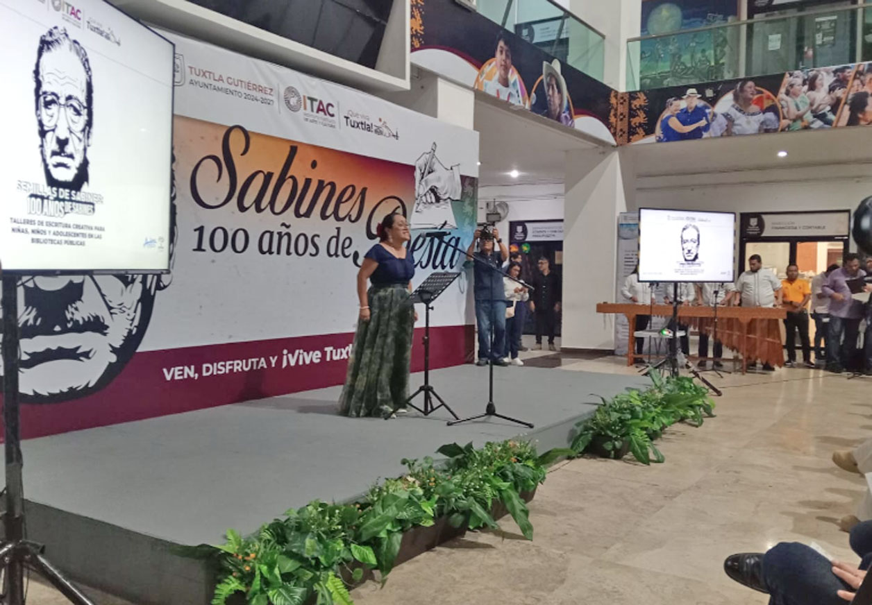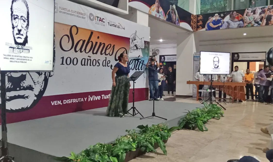 En la velada “Sabines: 100 años de su poesía”, el Ayuntamiento de Tuxtla Gutiérrez dio a conocer los resultados del programa Semillas de Sabines, iniciativa impulsada por el Instituto Tuxtleco de Arte y Cultura (ITAC), en coordinación con diversas bibliotecas de la capital del estado.