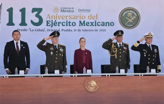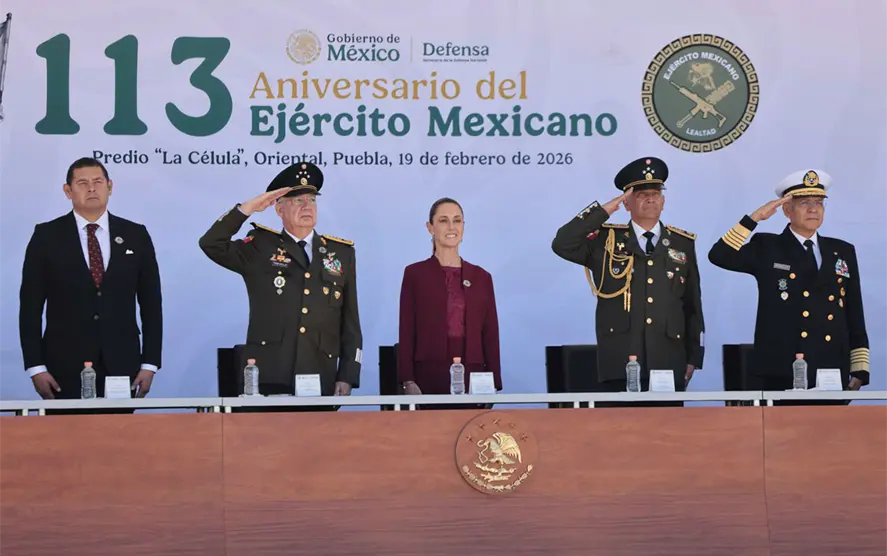 “El Ejército Mexicano es la consecuencia de un origen profundamente ligado a la voluntad popular. Hoy que vivimos en un mundo complejo, donde presiones externas, intereses geopolíticos y los desafíos globales pueden poner a prueba la soberanía de las naciones, en ese contexto, nuestras Fuerzas Armadas son garantía de que México decidirá su destino con independencia. La soberanía no es una consigna abstracta, es la capacidad real de nuestro pueblo para gobernarse sin imposiciones”, afirmó desde el predio La Célula, en Oriental, Puebla, sede de la industria militar de la Defensa.