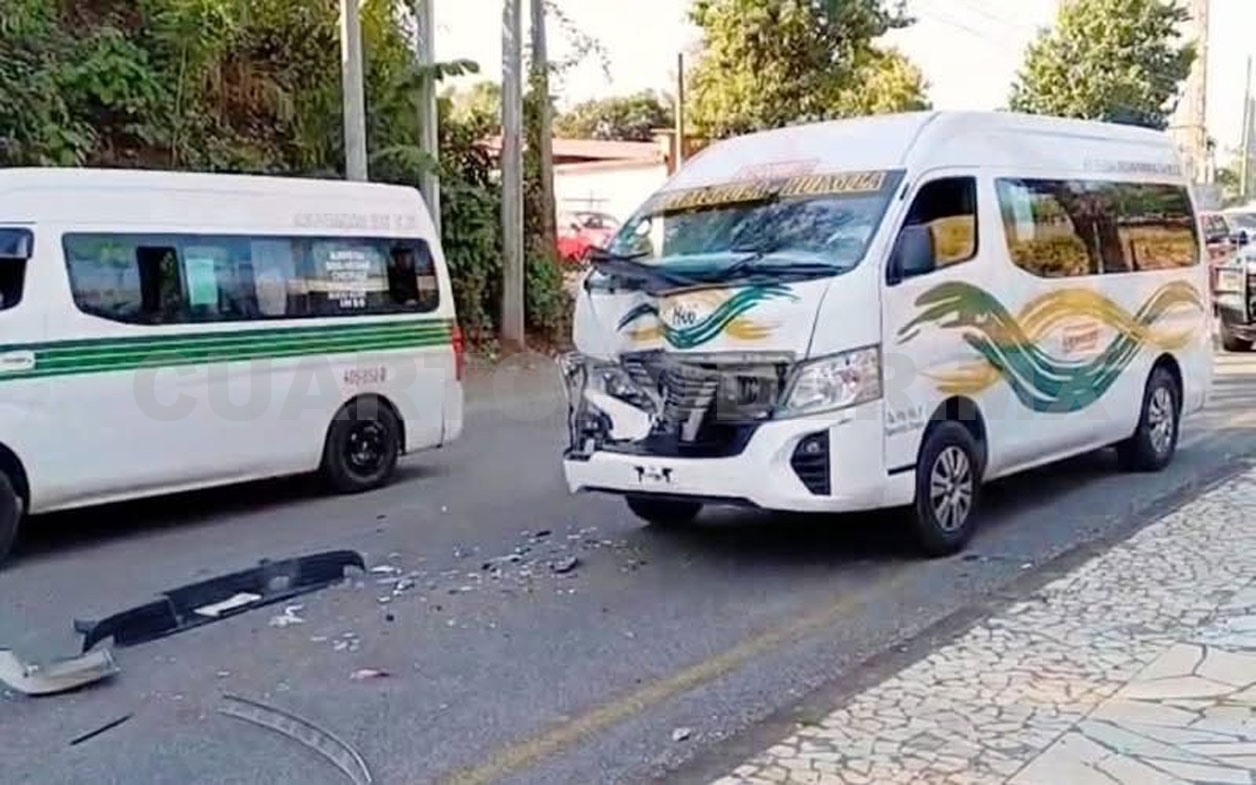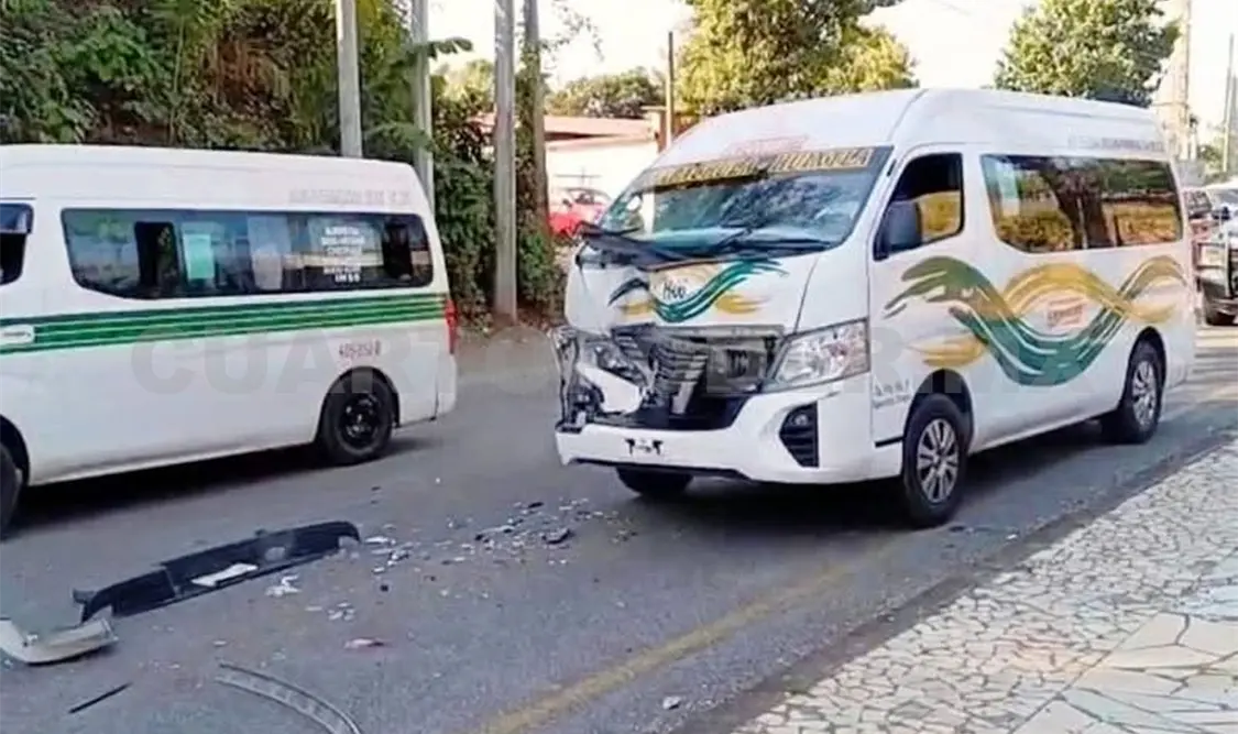 El exceso de velocidad con el que era conducida una combi del transporte colectivo de ruta foránea, fue la causa de un fuerte choque múltiple en la carretera Costera en el tramo Tapachula-Viva México, aunque afortunadamente solamente hubo daños materiales.