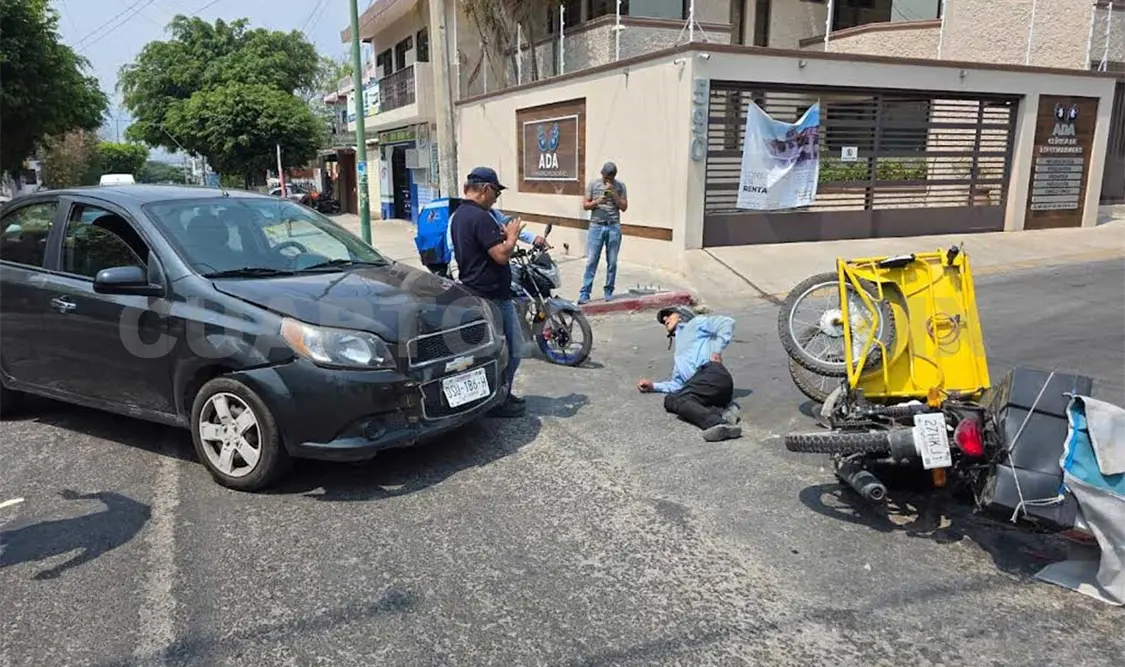 Debido al aparatoso accidente, Antonio resultó con múltiples lesiones en sus extremidades, quedando en asfalto bajo el candente sol capitalino.