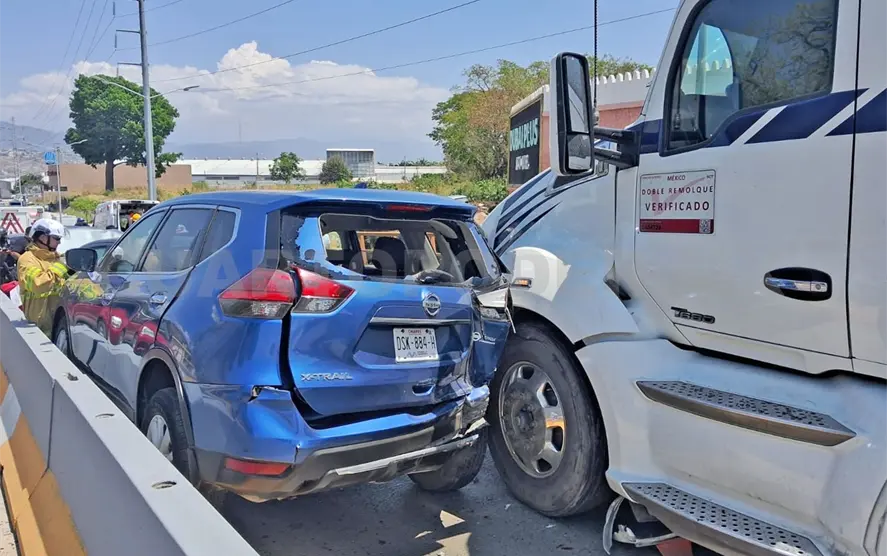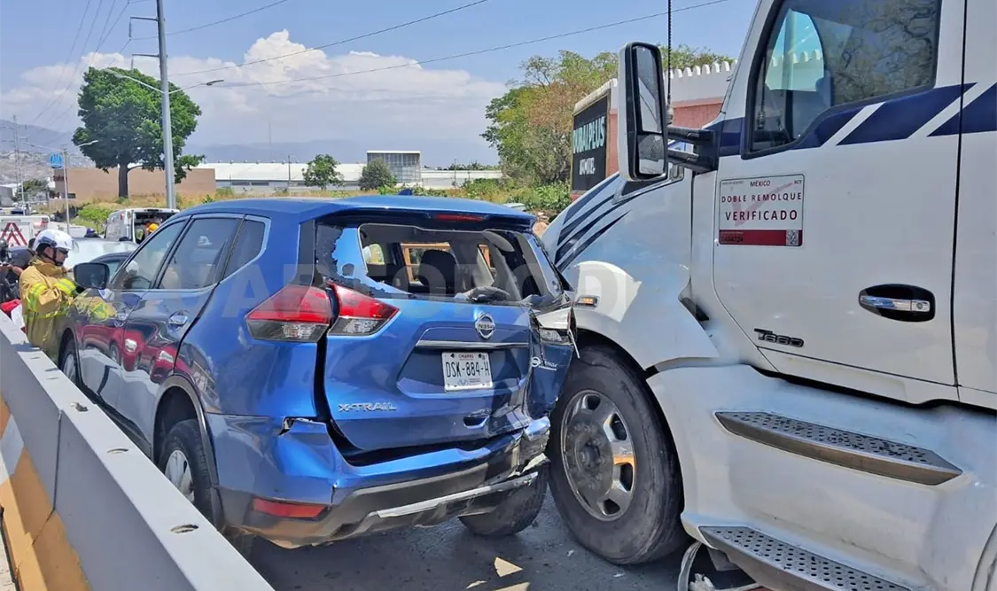 Un aparatoso accidente múltiple se registró el mediodía del sábado sobre el libramiento Sur, a la altura del crucero con el bulevar Andrés Serra Rojas, en la capital chiapaneca, donde un tráiler embistió al menos seis vehículos particulares, dejando como saldo cuatro personas lesionadas, entre ellas un menor de edad.