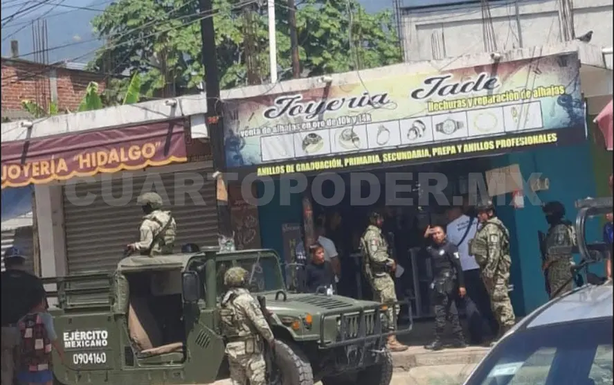 En medio de la crisis de seguridad que se vive en la población de Huixtla, el viernes sujetos armados cometieron un violento asalto en una joyería apenas a una cuadra del Palacio Municipal, en donde obtuvieron un botín considerado en más de 100 mil pesos.
